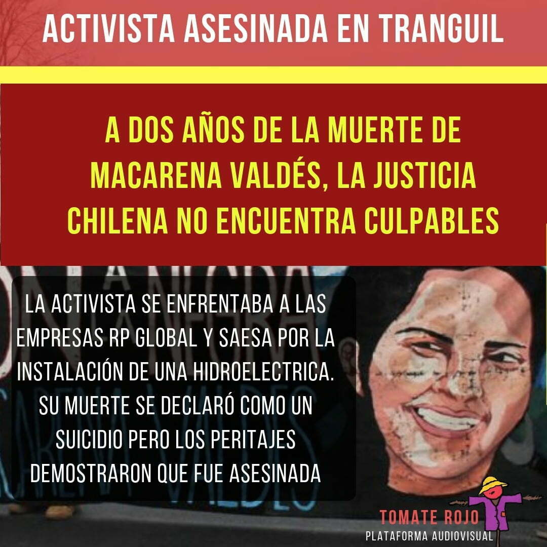 Era 22 de agosto de 2016 cuando un niño de once años abrió la puerta de su casa y encontró lo impensado: su madre muerta, colgando del techo. La mujer estaba acompañada de su otro hijo de tan sólo un año. Cuatro niños en total quedaron sin madre tras el supuesto suicidio de la activista medioambiental de 31 años, Macarena Valdés.