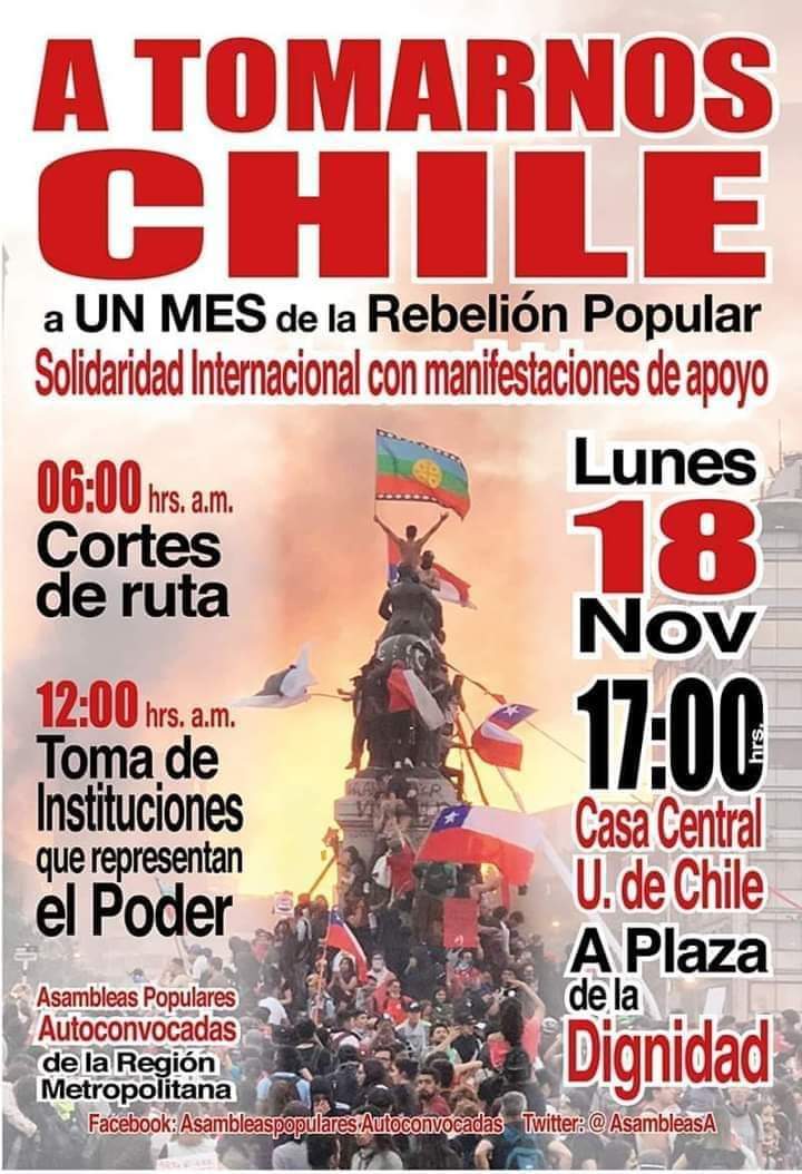 Para esta jornada se espera una masiva marcha a las 17 hrs en la Plaza de la Dignidad. Llamando a mantener la movilización y continuar con el proceso constituyente popular.