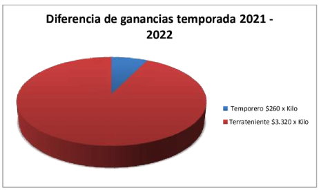 Es decir, mientras el temporero gana $260 pesos por kilo, el latifundista gana $3.320 pesos.